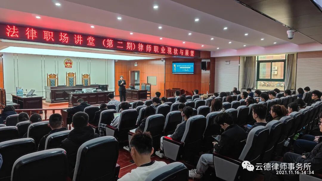 為了讓法學學子更好地了解法律行業的就業現狀以及律師職業的發展趨勢和未來前景,促進學生就業觀念的轉變,幫助學生樹立正確的職業意識,11月16日下午,云德律所秘書長、首席律師陳冬杰受邀為西北政法大學“法律職場講堂”第二期專題授課。本次活動由法律行業就職委秘書處主辦,西北政法大學學生就業創業指導中心、陜西云德律師事務所聯合承辦。西北政法大學招生就業處副處長鐵坤以及校內師生70余人出席了本次活動。