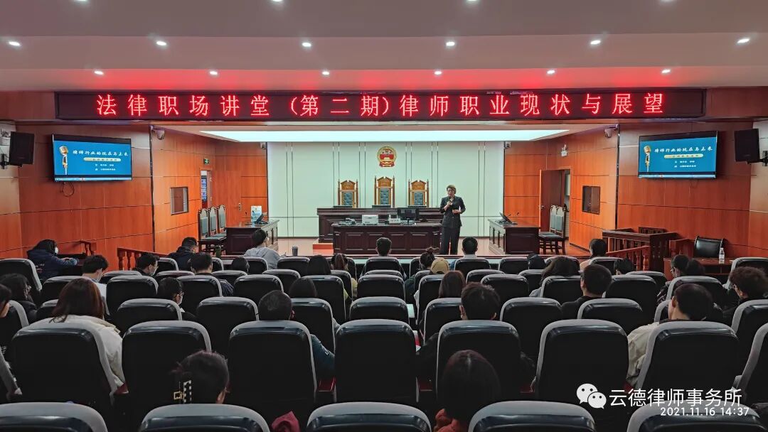 “法律職場講堂”是法律行業就指委秘書處聯合相關高校、用人單位、行業協會共同舉辦的系列活動。希望通過系列活動幫助政法院校大學生充分了解法律職場現狀及未來的發展趨勢,進一步幫助高校畢業生科學、合理、理性地選擇職業,從而做到提升畢業生的就業能力與競爭能力、幫助畢業生實現成功就業。