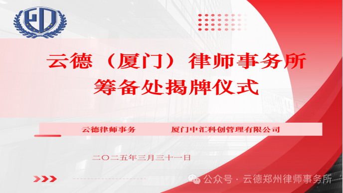 2025年3月31日,云德(廈門)律師事務所籌備處揭牌儀式在廈門中心成功舉行。標志著云德律師事務所在全國戰略布局中又一重要里程碑,進一步鞏固律師行業位。